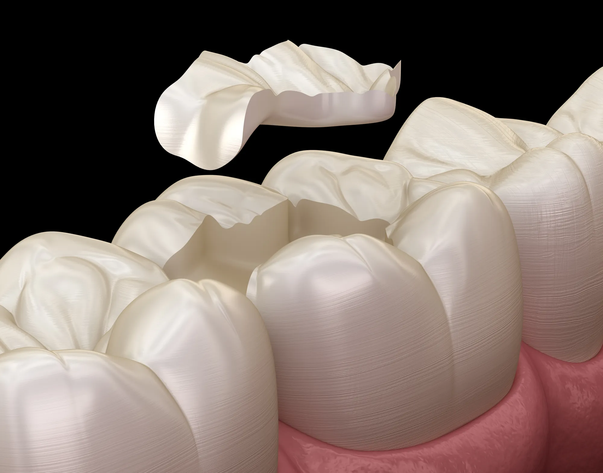 - Intarsi in ceramica o composito: perfetti per ripristinare la struttura dentale con un’estetica superiore.